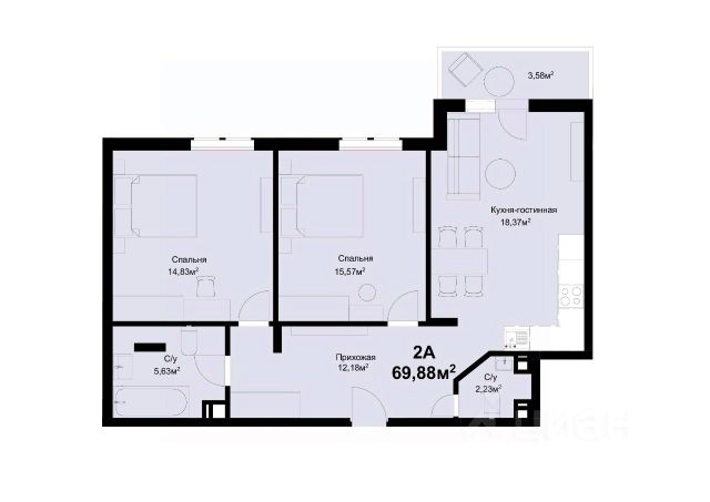 Возможно приобретение в рассрочку до конца строительства от застройщика