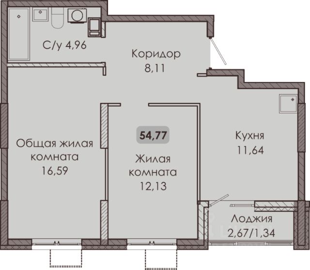 Планировка: просторная гостиная, прихожая с гардеробной, кухня-столовая, отдельная ванная комната