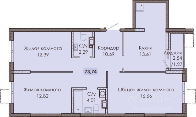 Две большие комнаты 17,4кв.м.+16,2 с выходом на балкон, без учета балкона площадь квартиры 48кв.м. Санузел совмещен.