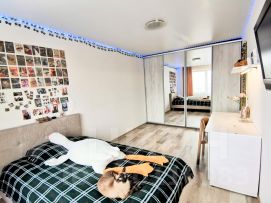 Планировка А2. В квартире выполнен качественный ремонт с применением современных материалов, здесь все продумано до мелочей. Входная дверь стоит качественная, сейфовая. На входе оборудована гардеробная с полками и вешалками. Совмещенный санузел оформлен в современном стиле, где установлены стиральная машина и сушильная машина, что позволяет вам быстро стирать и сушить одежду и экономить пространство которое нужно было бы искать для установки сушилки (особенно это важно когда есть маленькие дети). Кухня изолированная с функциональным кухонным гарнитуром и встроенной техникой. Приборы отопления снабжены счетчиками тепла, поэтому вы оплачиваете за отопление столько, сколько вы использовали по факту теплоноситель, также есть счетчики на горячую и холодную воду. Из окон прекрасный вид на лес и открывается приятный вид во двор, где всегда тихо и спокойно.