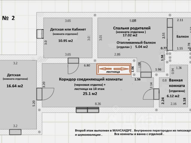 2-ой этаж (47,5 м2) - холл, 2 - спальни и санузел.