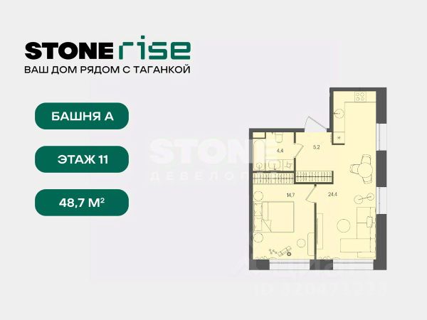 Студия · 26,7 м² · 4/20 этаж