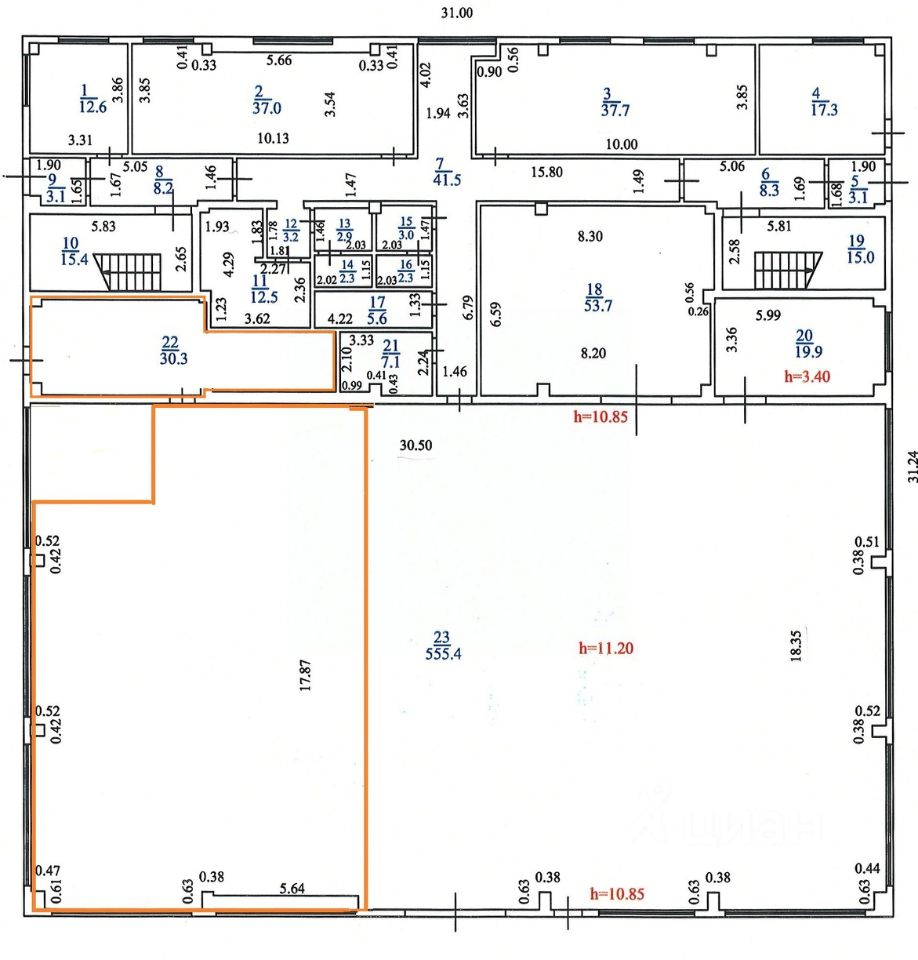 1 этаж: комната 22, часть комнаты 23 площадью 212,1 кв.м.). Год ввода в эксплуатацию - 2013. Состояние - хорошее; фундаменты свайные, монолитный ж/б ростверк; наружные стены(материал) кирпич; цоколь облицован керамогранитным плитами; перегородки керамический кирпич, гипсокартон, остекление - стеклопакеты; пол - линолеум; отделка потолков - подвесные, гипсокартон; вид отопления - центральное; система вентиляции и кондиционирования -центральная; системы электро-, тепло-, водоснабжения и канализации - имеются.