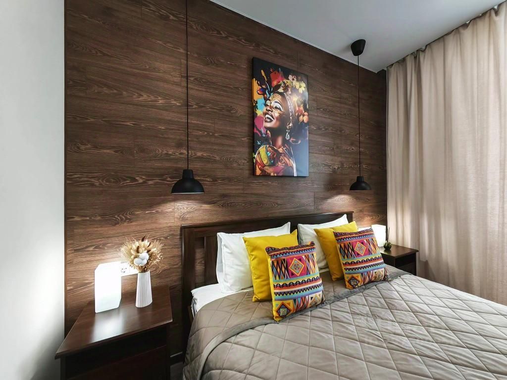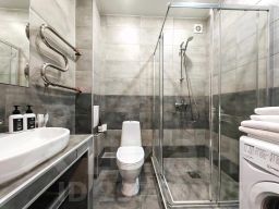В апартаментах: двуспальная кровать King Size с ортопедическим матрасом, двуспальный угловой раскладывающийся диван, постельное белье, бамбуковые подушки и одеяла. Кухня-гостиная оборудована варочной поверхностью, холодильником, микроволновой печью, посудой и необходимым для приготовления любимых блюд. Доступен Wi-Fi (100 Мбит/с), кондиционер для регулирования оптимальной температуры, ванная комната с набором белых хлопковых полотенец, а также стиральная машина-автомат, гладильные принадлежности, фен и утюг.