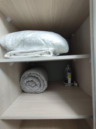 - Постельное белье из **хлопкового страйп-сатина**, полотенца и средства гигиены.