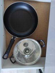 - Также есть посуда для приготовления и приема пищи.