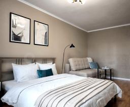 Спальни: удобные кровати 160х200, раскладной двуспальный диван, чистое хлопковое постельное бельё, дополнительное освещение, розетки у кроватей, затемняющие шторы.