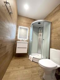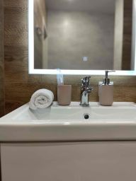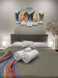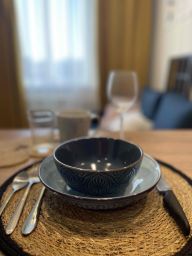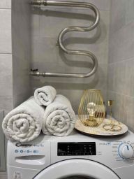В апартаментах: кровать с ортопедическим матрасом, белоснежное хрустящее белье из высококачественного хлопка сатин-страйк, которое используется в 5-звездочных отелях, мягкие банные полотенца, кондиционеры для регулирования оптимальной для вас температуры в комнате, большой телевизор со SMART TV, кабельным ТВ и онлайн- кинотеатром ivi, WiFi, Быстрый интернет, 100Мб, посудомойка, духовой шкаф, СВЧ-печь, холодильник, варочная поверхность, чайник, утюг, фен, кухонные принадлежности: тарелки, суповые тарелки, стаканы, бокалы для воды и вина, кастрюли, сковородки, столовые приборы, поварешки, водичка, кофе, чай, шоколадки, соль, сахар, масло для жарки - все для комфортного утра;). Косметические принадлежности: шампунь, гель для душа, крем для тела, мицеллярная вода, средства гигиены, зубные щетка и паста.