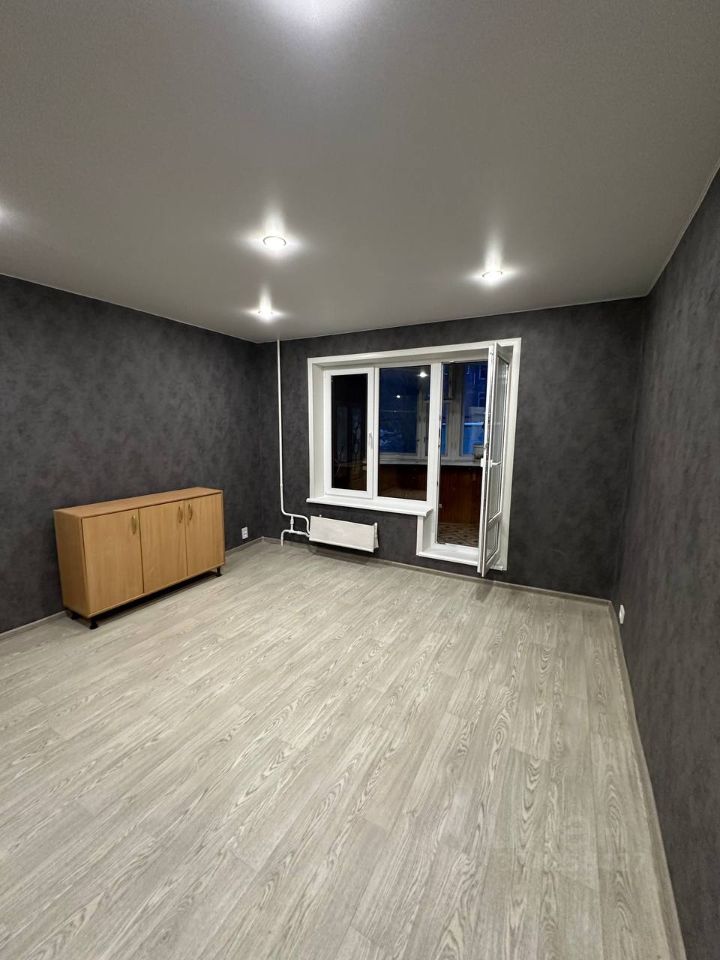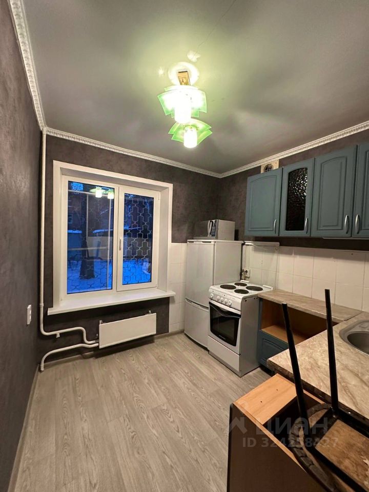 Сдаётся однокомнатная квартира площадью 34,8 кв. м на первом этаже девятиэтажного панельного дома.