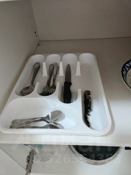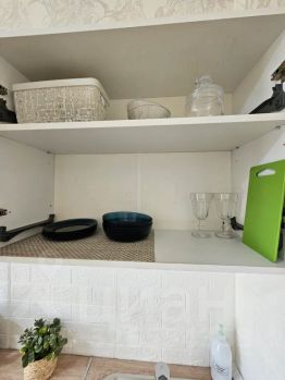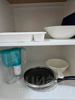 А также есть вся необходимая посуда, чайник, фильтр для воды, холодильник, СВЧ-печь.