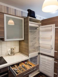 Техника: кондиционер, стиральная машина, встроенный холодильник, микроволновка, телевизор,пылесос — всё необходимое для жизни. Мебель: двуспальная кровать, два дивана, шкафы, стол, встроенная кухня.