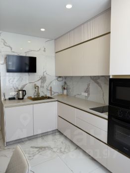 В квартире есть все что на фото, в каждой комнате есть телевизор. На Кухне встроенный кухонный гарнитур с встроенной современной техникой, включая микроволновую печь и духовой шкаф, варочную поверхность, посудомоечная машина. Санузел совмещенный, выполнен в стильном современном стиле.
