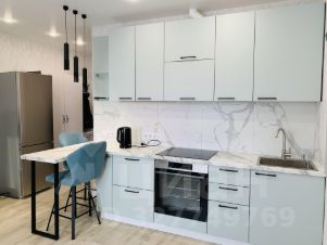*кухонный гарнитур, барная стойка и 2 мягких интерьерных стула;