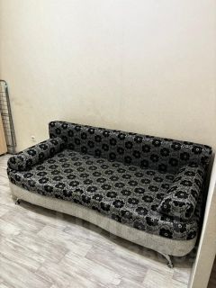 Уют и порядок: В комнате удобный раскладной диван и функциональная ТВ-стенка. Для вещей предусмотрен вместительный шкаф.