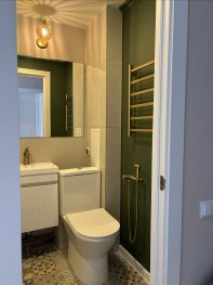 Квартира солнечная, только после ремонта, с новой мебелью. На фото все показано. Есть отдельная постирочная зона, а так же большая гардеробная. Есть балкон, но он не отделан. Есть теплый пол там где плитка.