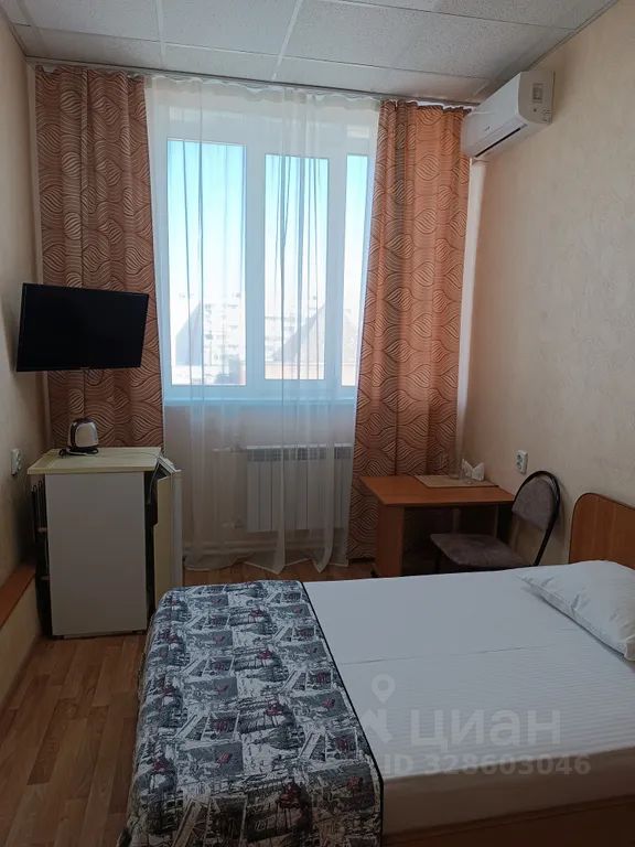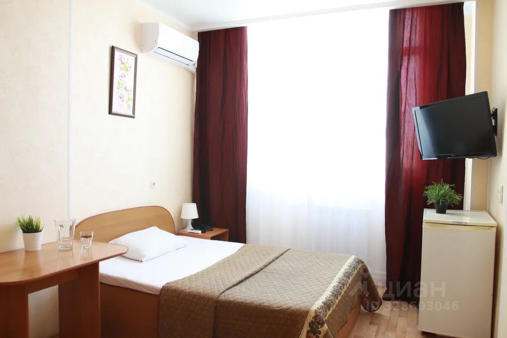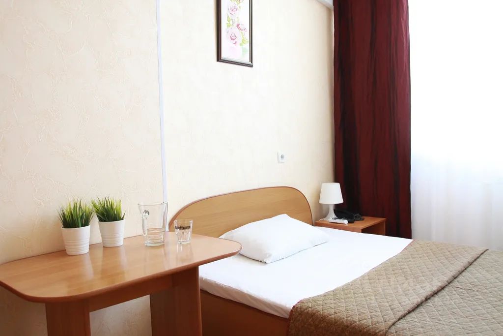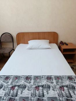 Одноместный номер с полутораспальной кроватью. В номере есть телевизор, телефон, шкаф, прикроватная тумбочка, стол, стул. Ванная комната с принадлежностями.