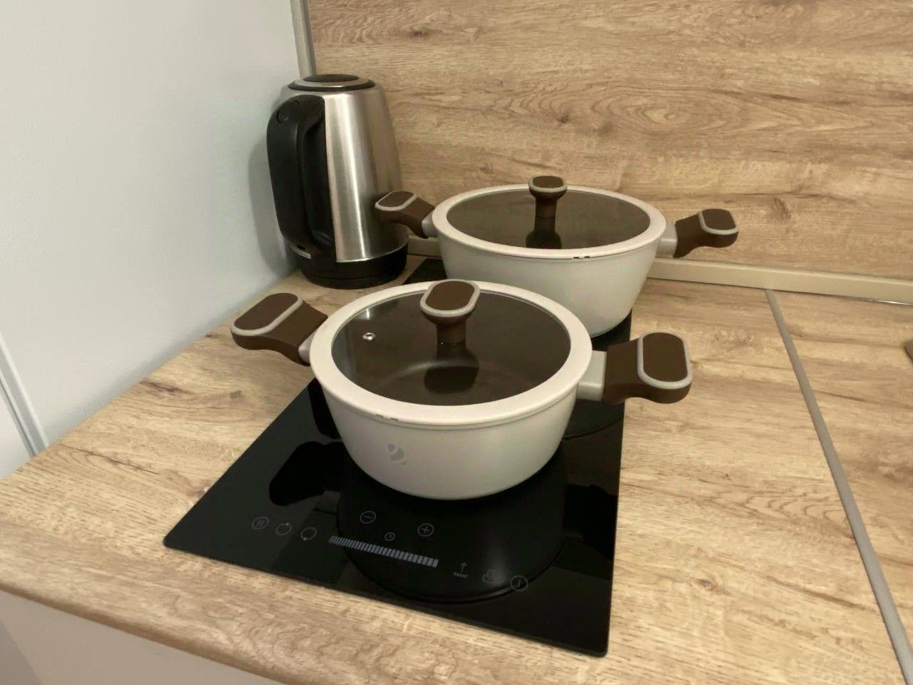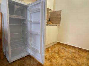 Из бытовой техники в апартаментах есть всё необходимое - кухня с варочной панелью, холодильником и микроволновой печью, стиральная машинка, телевизор, кондиционер.