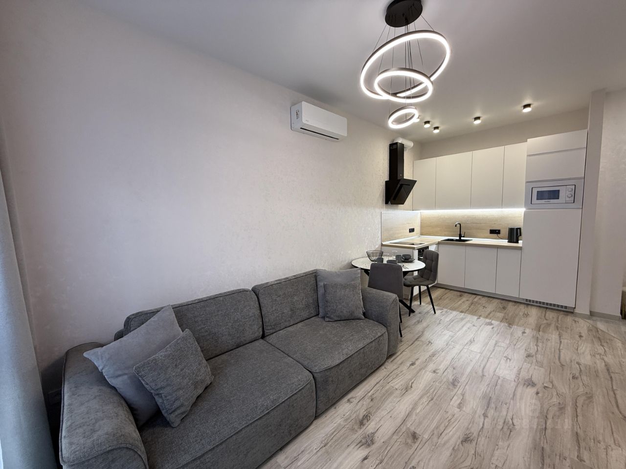 Предлагаем вашему вниманию стильную новую двухкомнатную квартиру в аренду с дизайнерским ремонтом в новом ЖК ЕЛКИ ПАРК , Общая площадь квартиры составляет 38 квадратных метров, жилая площадь — 12 квадратных метров, а кухня- гостиная — 19 квадратных метров. Квартира расположена на первом этаже шестиэтажного дома, построенного в 2025 году, с высокими потолками в 3 метра и окнами, выходящими во двор.