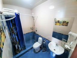 Просторный номер с двуспальной кроватью и диваном.Возможно размещение одного,двух или трех человек. Каждый номер оснащен LCD телевизором, телефоном, холодильником, Wi-fi, феном, чайником, чайным сервизом,чай, кофе, конфеты, . Собственная ванная комната с душем, туалетом, полотенцами и мыльными принадлежностями.