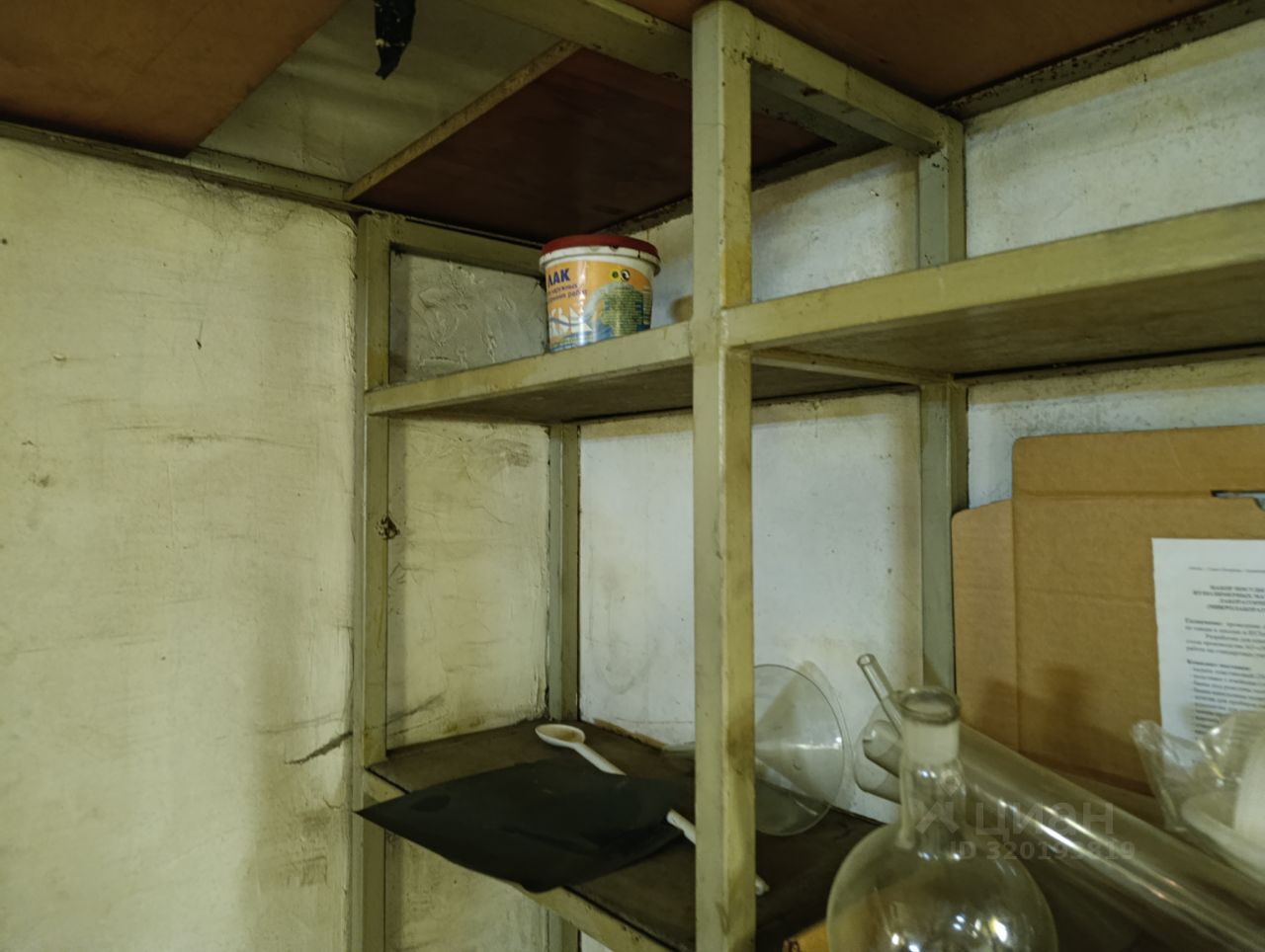 в гараже имеются: смотровая яма , железный верстак , полки по периметру .