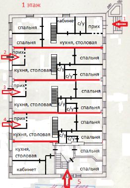 Вариант планировки одного апартамента (по 3 лофта) площадью 380 кв м :