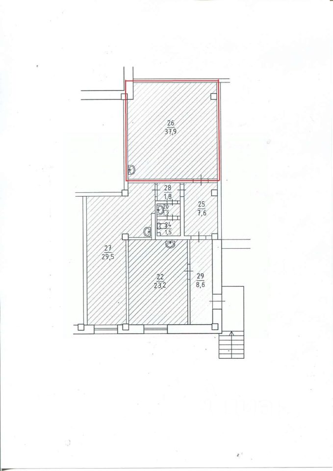 Продается помещение 44,8 м2, включающее в себя комнату 37,9 кв.м и МОП площадью 6,9 кв.м
