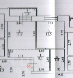 Отдельно жилая комната 11,5 кв.м