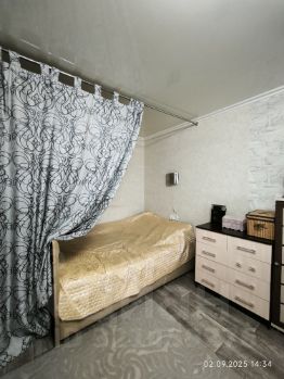 Выровнены все стены, поменян ленолиум, новая хорошая входная дверь. В одном стиле межкомнатные двери , дверь в зал очень оригинальный( сделали под заказ). Натяжные потолки.