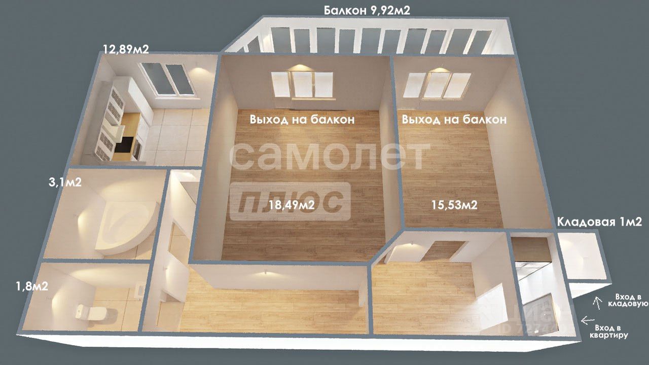 - Комнаты: 18,5 + 15,5 м²