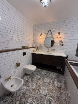 В квартире выполнен дизайнерский ремонт, поэтому вы сможете наслаждаться уникальной атмосферой и высоким качеством каждой детали. Высокие потолки в 2.8 метра добавляют пространства, а окна, выходящие на улицу и во двор, обеспечивают естественное освещение. Совмещенный санузел выполнен в современном стиле. В квартире есть все необходимое для комфортного проживания.