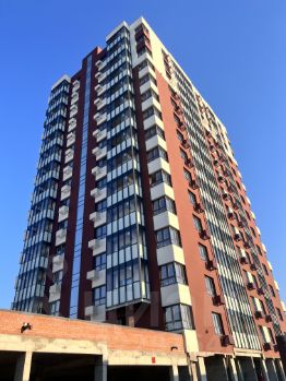 Дом из красного керамического кирпича, навесной вентилируемый фасад, корзины под кондиционер, ip-домофон.