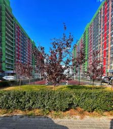 Территория жилого комплекса огорожена, въезд через шлагбаум, просторная парковка, ухоженный двор, детская площадка, видеонаблюдение, в доме продовольственный магазин.