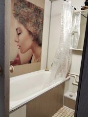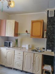 Кухня оборудована всем необходимым: встроенные шкафы, современная плита и холодильник. Санузел совмещенный, оформлен в светлых тонах. В прихожей установлен вместительный шкаф-купе.