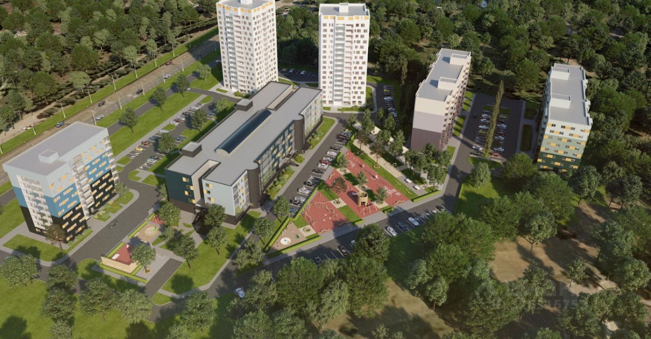 Состоит из многоквартирных многоэтажных и среднеэтажных жилых домов