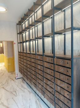 Дизайнерская отделка входной группы, лобби, холлов на этажах.