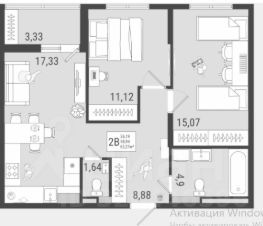 2х комнатная квартира 60.61м2 (идеально для семейных пар с ребенком)