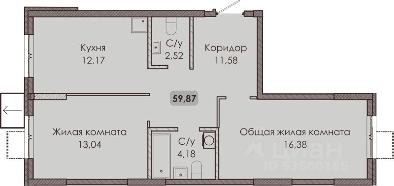 Продаётся 2-комнатная квартира в строящемся доме (1 корпус (ул. Лесная,56А)), срок сдачи: I-кв. 2028, общей площадью 59.87 кв.м., на 1 этаже. Новый жилой комплекс "Сотый квартал" от застройщика "СЗ АДРЕС" расположен по адресу Россия, Самарская область, Тольятти, Лесная улица, 56А.