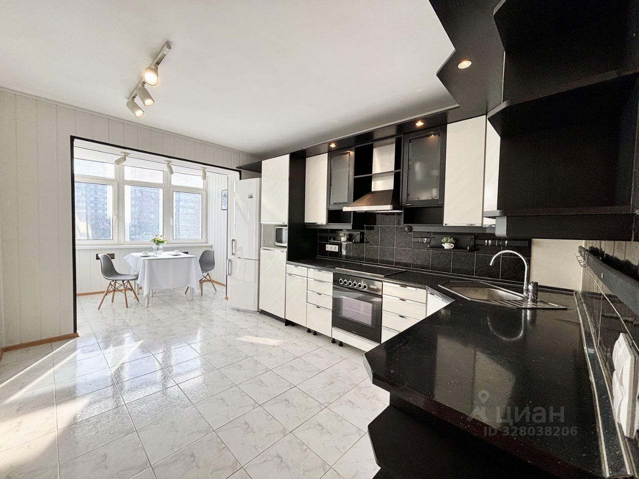 Уютная кухня-столовая с видом на парк: Вас ждет полностью готовая к использованию кухня со встроенной техникой: варочная панель Gorenje, духовой шкаф Ariston, вытяжка и холодильник VeKo. На кухне стильный фартук из плитки, трековые светильники и удобные розетки для стиральной машины (есть место в гарнитуре). Обеденная зона вынесена на утепленный балкон и электрическим теплым полом. Представьте, как приятно пить утренний кофе, глядя на зелень парка!