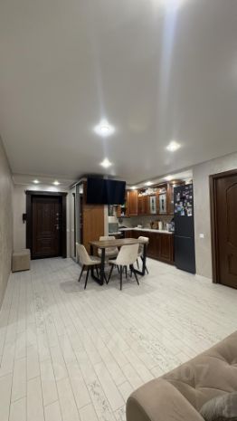 В квартире сделан хороший ремонт: установлены новые пластиковые окна из качественного профиля, на полу линолеум и плитка, на стенах обои, натяжные потолки, качественное освещение, новая сантехника, обшитая лоджия.