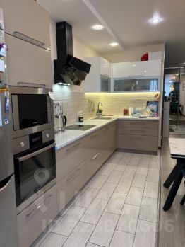 Просторная кухня-гостиная 20 кВ метров, с современным кухонным гарнитуром и встроенной техникой( варочная поверхность, духовка, микроволновка, посудомоечная машина, холодильник, вытяжка остаются)