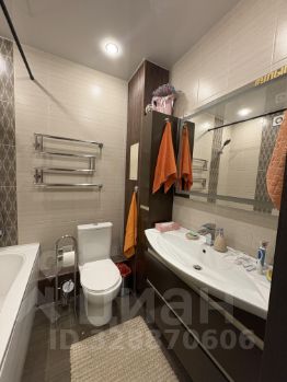 Санузел совмещенный, ванна пластиковая, встроенная мебель, теплый пол.