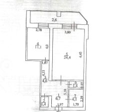 Этаж второй из одиннадцати. Жилая комната 24 кв.м., кухня 11 кв.м. Санузел совмещенный 4 кв.м., куда легко помещается и стиральная машина. Есть кладовая комната. Просторная остекленная лоджия, предохраняющая от жаркого солнца летом и холодного зимнего воздуха.
