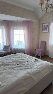 2 этаж - 90 кв.м., где располагаются три спальни очень уютные . Каждая со своим настроением и цветовой палитрой, с полным оснащением мебелью, шкафами, освещением, шторами. На втором этаже есть выход на просторный балкон, где можно уединиться и любоваться ландшафтным дизайном сада, над которым трудились садовые дизайнеры. На втором этаже располагается своя ванная комната с санузлом, джакузи и душевой кабиной.