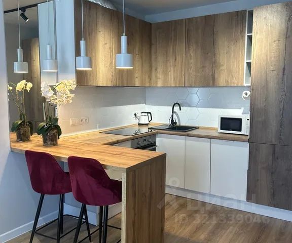 - Кухня оборудована **электроплитой**, **духовым шкафом**, **вытяжкой**, **холодильником**, **микроволновой печью**.