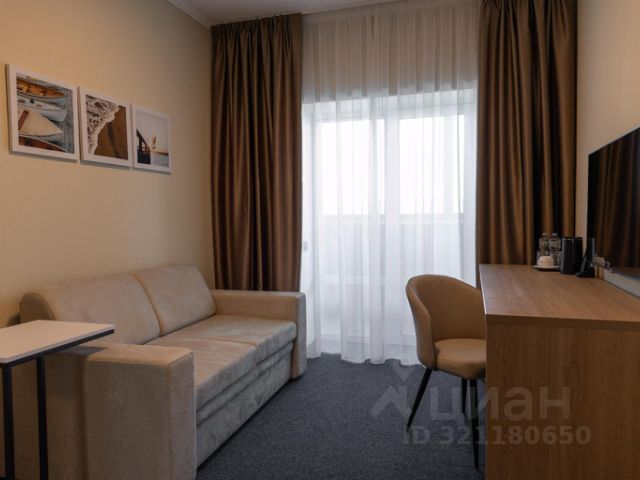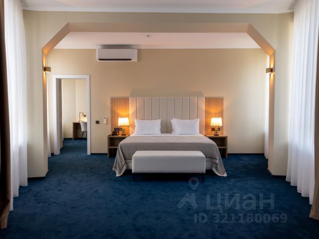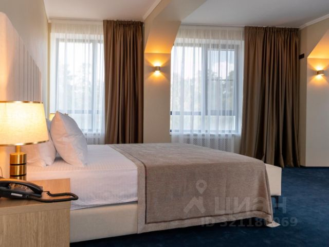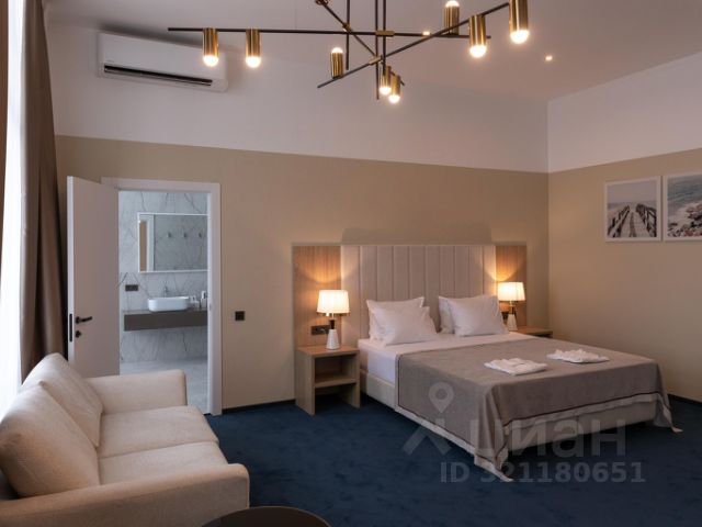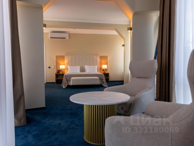 Просторный светлый номер с современным дизайном с широкой двуспальной кроватью и декоративным диваном (предоставляется как доп.место). Номер разделен на две зоны: зона отдыха и спальная зона, оборудованный санузел (ванна, умывальник, унитаз). В номере есть телевизор, кондиционер, фен, телефон, стол, мини-холодильник, гардероб, гигиенические принадлежности, тапочки, полотенца и халат. В номере имеется wi-fi. Возможно размещение до 3-х человек.