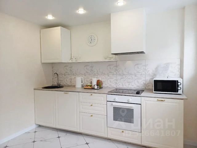 Кухня оснащена плитой, холодильником, СВЧ, чайником , комплектом посуды, приборов, бокалов, кухонных принадлежностей
