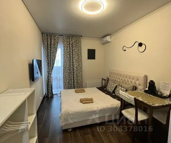 Просторная, уютная квартира -студия, с прекрасным видом на город, есть все необходимое для короткого и длительного проживания. Большая двуспальная кровать, удобный диван (не раскладывается).